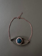 A stunning emerald green eye bracelet set on a thin rose gold chain.