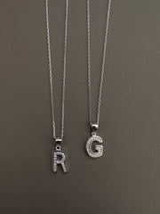 A beautifully-handcrafted delicate initial necklace set on 925 Sterling Silver with mini zirconia stones.