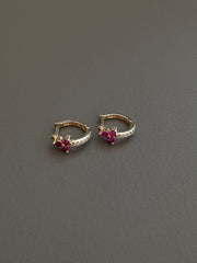 The perfect everyday earring, this Alissa mini hoop features pave stones as well as a pink triple stone set on a gold huggie hoop.
