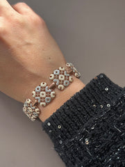 This delicate turquoise & cream crochet style bracelet is perfect to stack with your favourite bracelets for a touch of fun.
