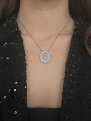 D Initial Silver Pave Necklace